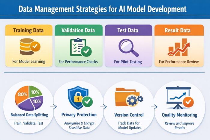 However, the single most important factor that determines success — more so than the choice of model architecture — is how the data used to train, validate, test, and operate the model is managed. Even with the same model, the quality and robustness of data management can dramatically influence accuracy, trustworthiness, and stability. In this article, we explore practical strategies for managing AI data — from splitting datasets to version control — to ensure effective, scalable AI model development.